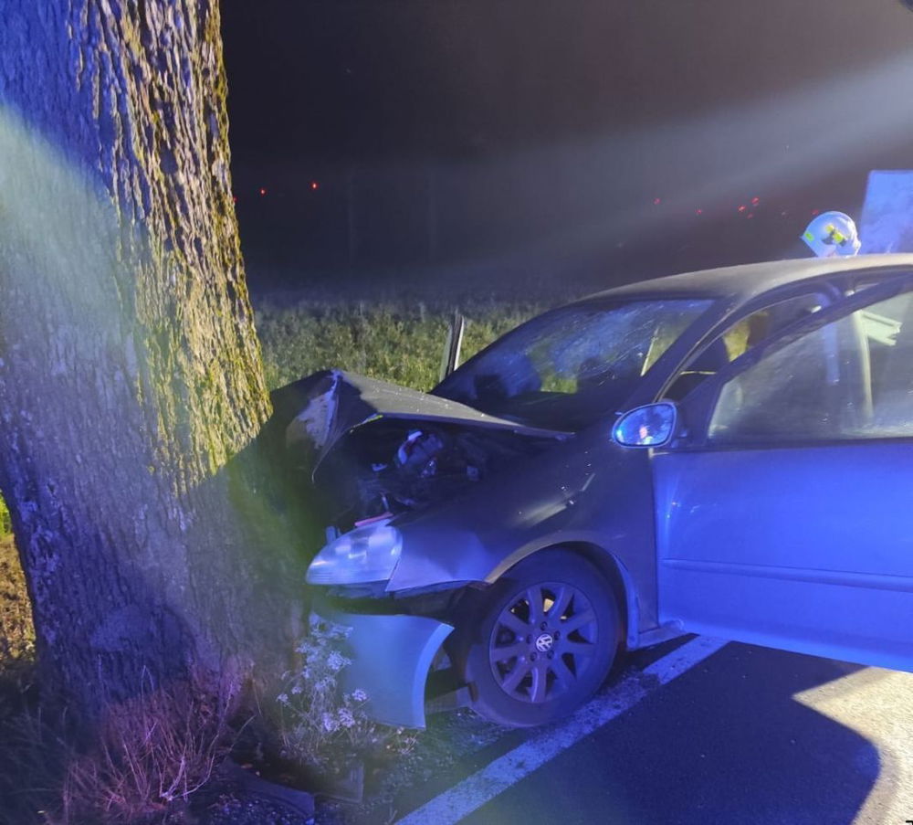 Kierujący Volkswagenem uderzył w drzewo. Dwie osoby trafiły do szpitala