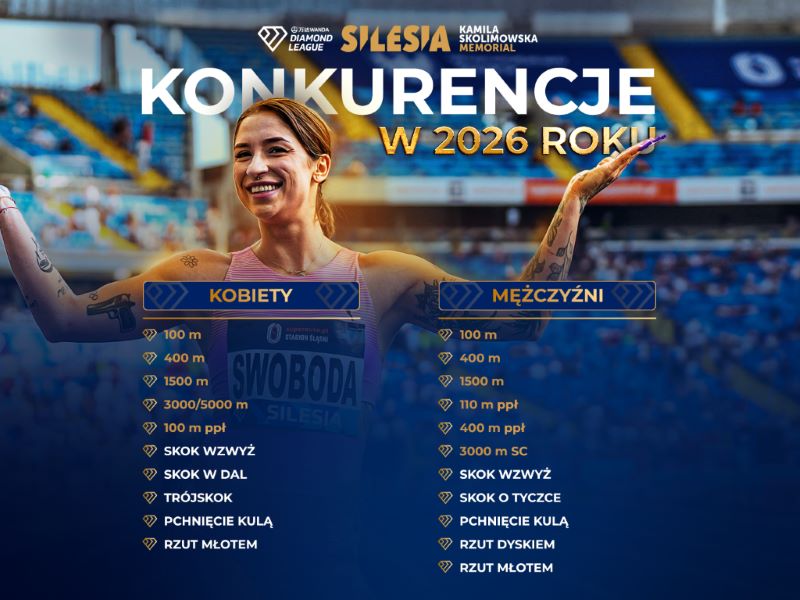 Męska tyczka, sprinty na 100 metrów, biegi na 400 m, żeński skok wzwyż czy 1500 m panów. I wiele więcej. Słowem: wszystko, o czym marzyliśmy, znajdzie się w programie na 2026 rok – cieszy się Piotr Małachowski, dyrektor sportowy Silesia Memoriału Kamili Skolimowskiej. Diamentowa Liga zatwierdziła konkurencje w poszczególnych mityngach. To już pewne: na Śląsku znów będą atakowane rekordy.